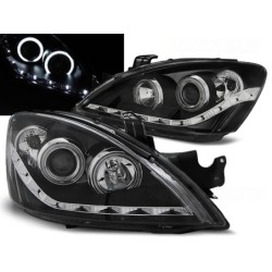 Phare avant avec feu de stationnement LED et pourtour à double auréole. Produit neuf, livré par paire (gauche droite). non homologué Feu de stationnement : CCFL +LED feu de croisement : H7 inclus Faisceau de route : H1 inclus Réglage : manuel (un dispositif de réglage électronique ne peut être installé). LED ANGEL EYES CCFL