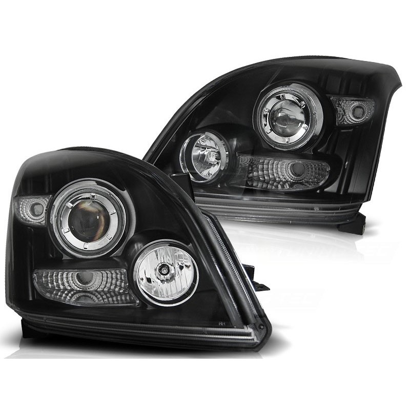 Phares avant Toyota land cruiser 120 03-09 angel eyes noir ccfl