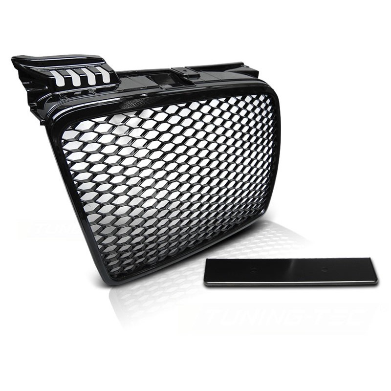 Calandre RS STYLE . BRILLANT Noir Fit for plain bumper and DTM package.Does not fit the bumper S-Line and RS-4. L'ensemble comprend: - porte-logo - cadre de plaque d'immatriculation