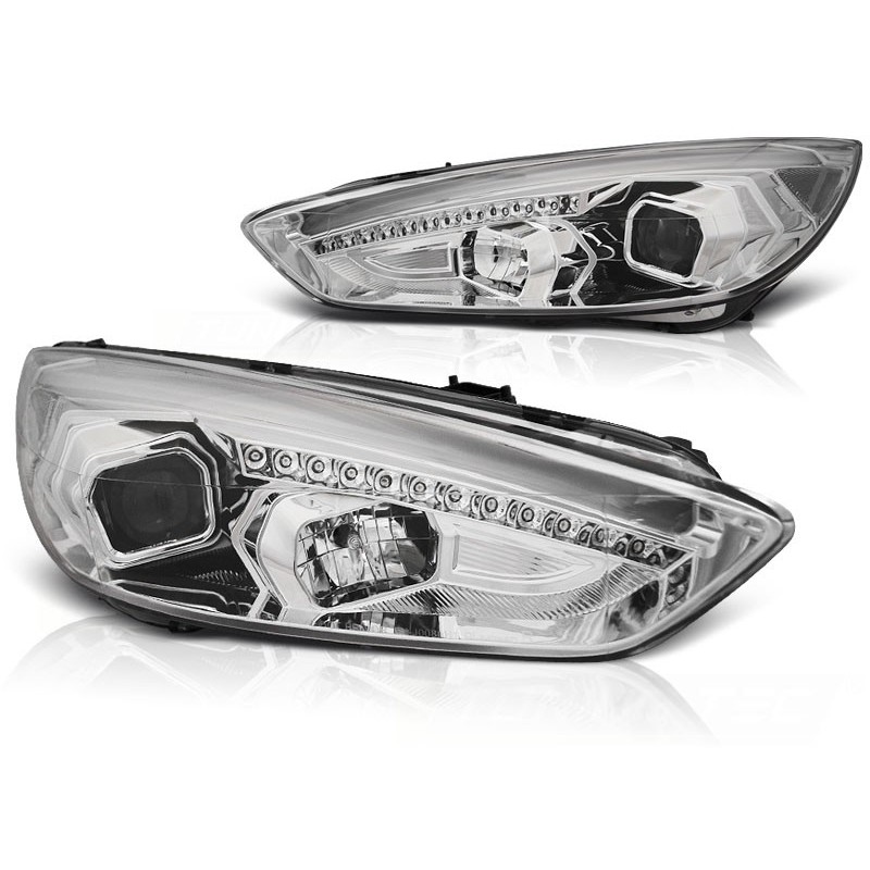 PHARES AVANT FORD FOCUS MK3 15- CHROME DRL LED