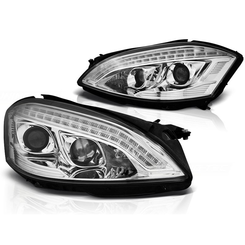 PHARES AVANT MERCEDES W221 05-09 DAYLIGHT HID CHROME