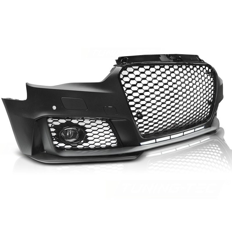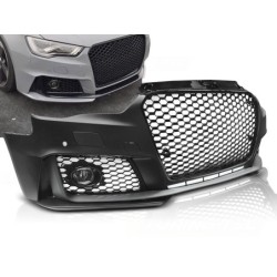 Pare-choc avant RS3 STYLE Matiere polypropylène . Pour modèle : avec hayon, SPORTBACK L'ensemble comprend: -NOIR BRILLANT mesh grille- PDC avec trou capteur- Emplacement lave phare - support lampe de brouillard - Cache phare antibrouillard -side grilles- fog lamps- porte-logo - Cache crochet de remorquage- cadre de plaque d'immatriculation- bumper lip PDC
