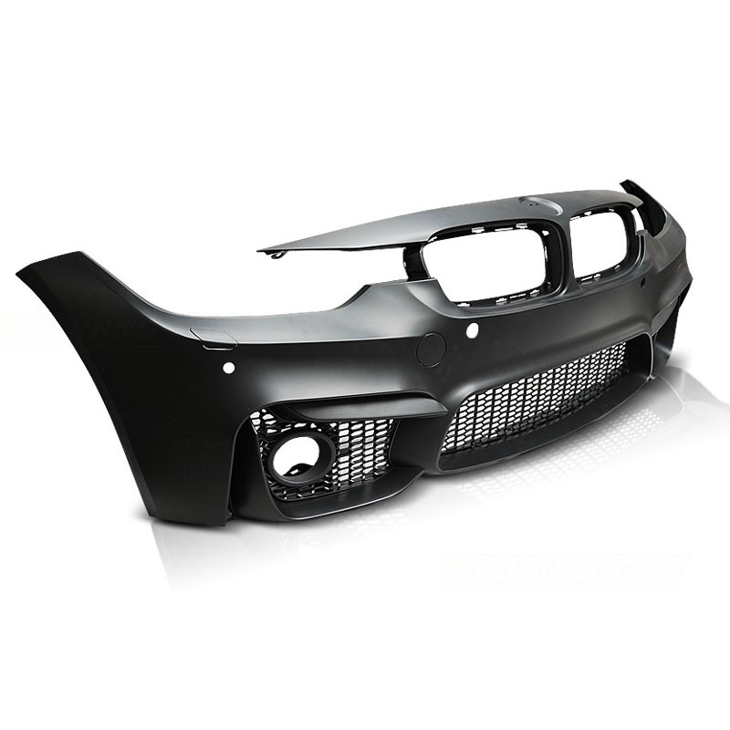 Pare-choc avant M3 STYLE Avec emplacement capteur de stationnement . Matiere polypropylène . L'ensemble comprend: - - Emplacement lave phare - Cache lave phare - Cache crochet de remorquage- calandre inférieure - Cache phare antibrouillard - absorber PDC