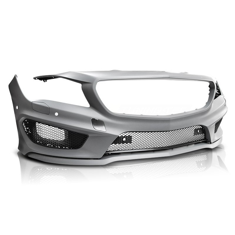 Pare-choc avant AMG STYLE . Matiere polypropylène . Pour modèle : C117 COUPE, X117 Shooting Brake L'ensemble comprend: - PDC avec trou capteur- Emplacement lave phare - Cache lave phare - Cache crochet de remorquage- outer grille- calandre inférieure PDC