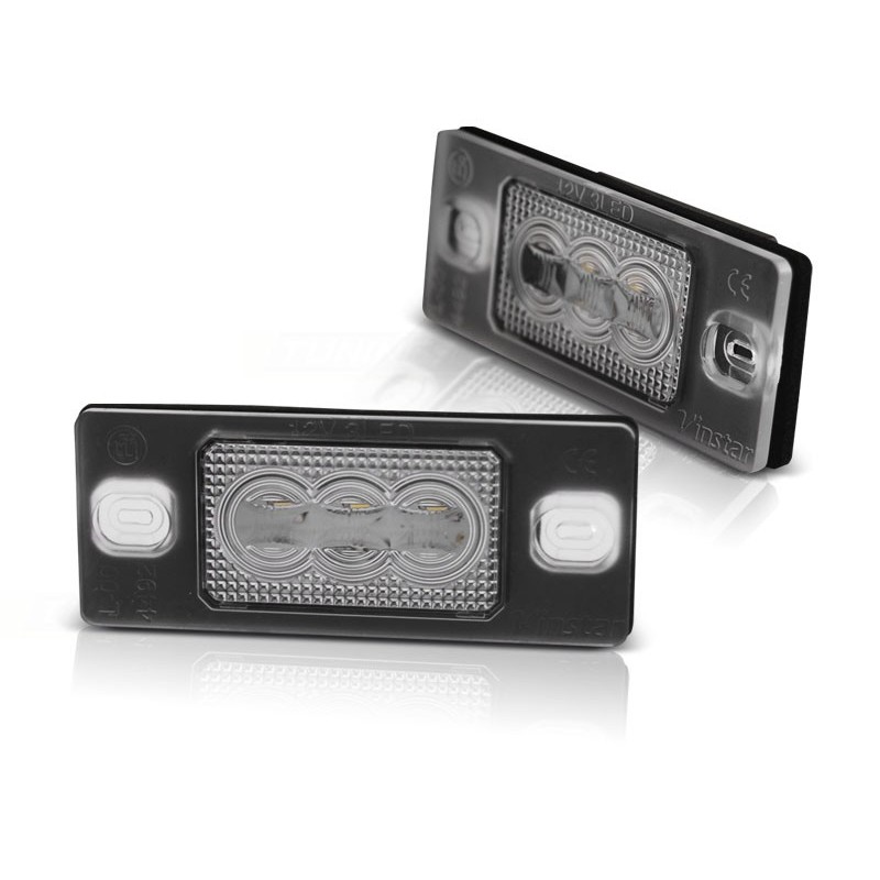 Eclairage de plaque d'immatriculation à LED. Produit neuf Vendu par paire (droit et gauche) . approuvé E-markE4-. Convient à: VW TOUAREG 2002 - 2010VW TIGUAN 10.2007 - 02.2010VWBORA VARIANTVW GOLF4 VARIANTVW GOLF5 VARIANTVW PASSAT 3BG 2000 - 2005 VARIANTPORSCHE CAYENNE 2002 - 2010
