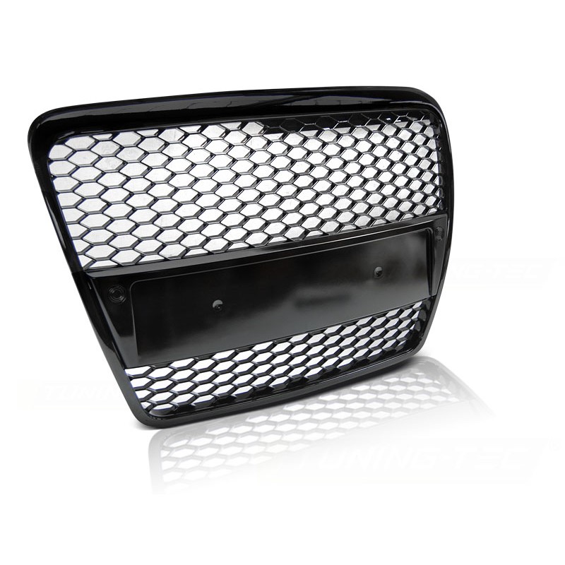 Calandre RS style BRILLANTE NOIR la capacité de capteur de stationnement connexion Convient à: AUDI A6 C6 04-08 LIMOUSINE / pare-chocs AVANT Standard et S en ligne L'ensemble comprend: - support logo - cadre de plaque d'immatriculation avec couvercle PDC