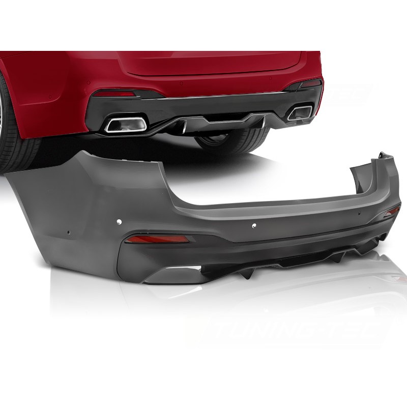 Pare-chocs arrière STYLE M-PERFORMANCE Emplacement radar de stationnement Fabriqué en polypropylène. Car: G31 L'ensemble comprend: - crochet de remorquage PDC capteur hole- COUVERTURE- avec double diffuseur de sortie double muffler- léger renfort reflector- pare-chocs arrière de support (LH / RH) - Tous les composants nécessaires pour installer / monter un PDC Pare-chocs