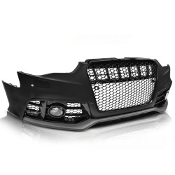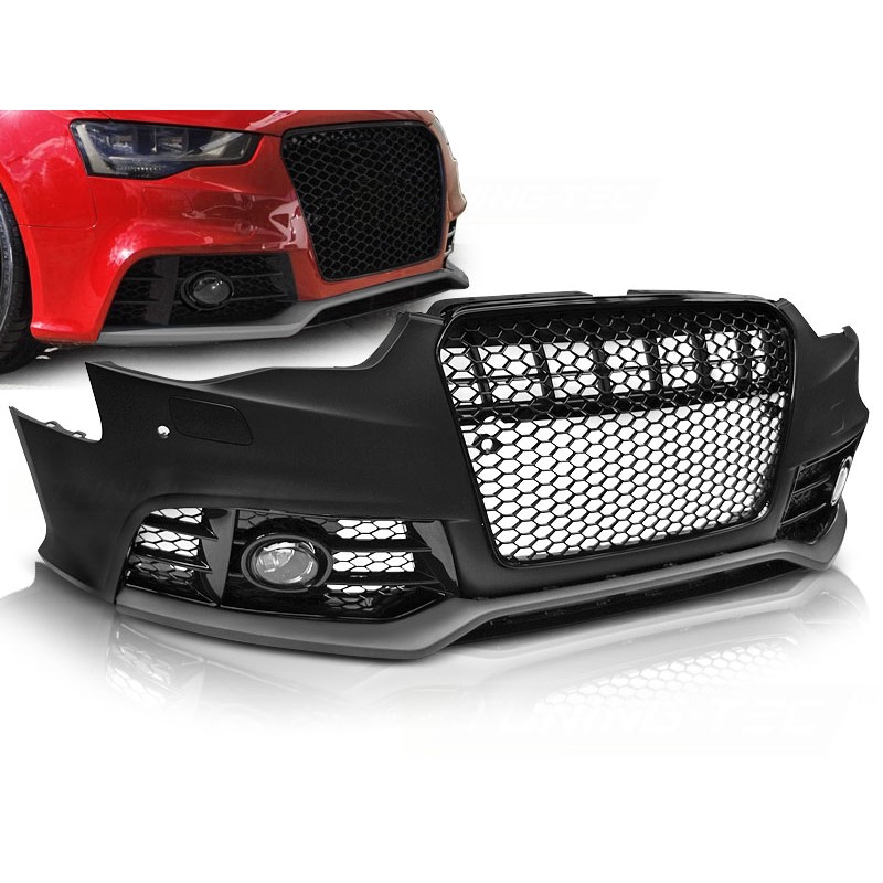 Pare-chocs avant RS5 STYLE Fabriqué en polypropylène. Car: LIFTBACK, CABRIO, COUPÉ L'ensemble comprend: - lampe BRILLANTE maille brouillard lave capteur Grille- PDC hole- trous- NOIR feu de brouillard HOLDER- côté COUVERTURE- Grilles- brouillard lamps- porte-logo - crochet de remorquage plaque d'immatriculation COUVERTURE- pare-chocs lèvre PDC dE CADRE