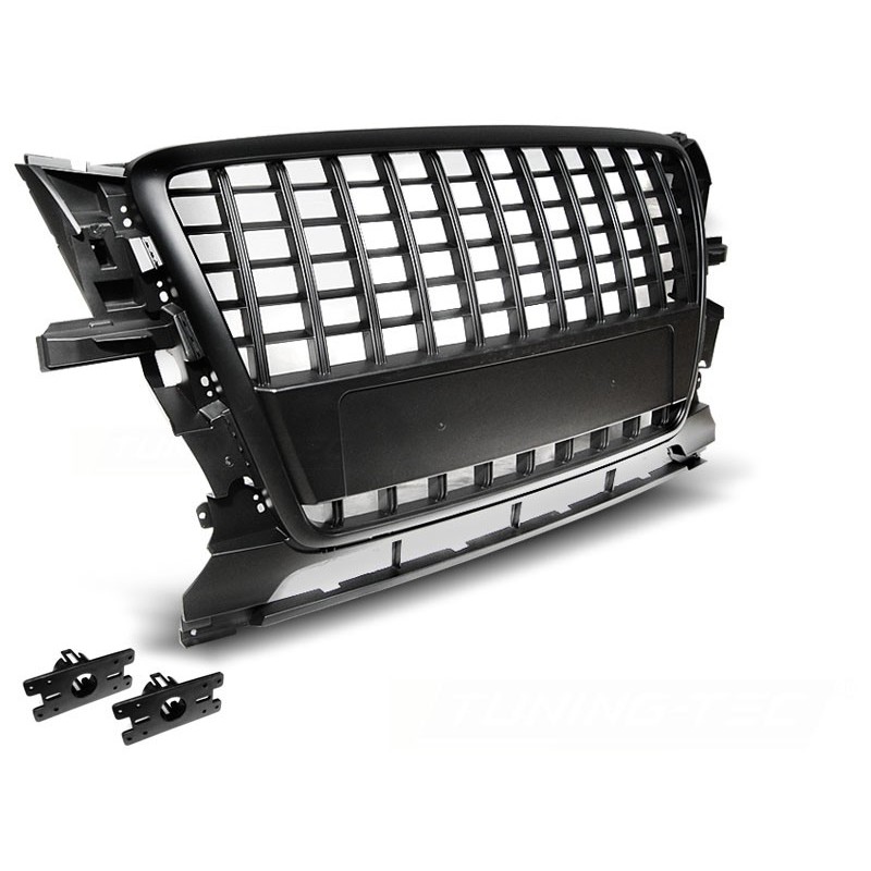 Calandre style S-line. MAT NOIR Ne convient avec pare-chocs S-Line. avec la possibilité de connecter le capteur de stationnement. L'ensemble comprend: - cadre pour l'encastrement du logo - Cadres pour capteurs de stationnement PDC